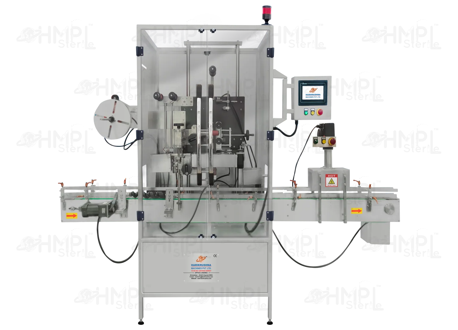 Harikrushna Machines Pvt. Ltd. is a leading manufacturer of Shrink Sleeve Machines. We are providing different kinds of sleeving solutions by manufacturing & supplying better quality Shrink Sleeving Machines to various industries. By offering durable conveyance for packaging bottles, The Machine is best suitable for Pharmaceuticals, Dairy, Beverages, and Cosmetic Industries. Our Machine offers higher accuracy by resulting inaccurate labeling on The object's surface. It can fulfill the demands of different manufacturers, As these machines are known for longer service life & very low maintenance, Which reduce the production cost for The customer and improve the production rate.